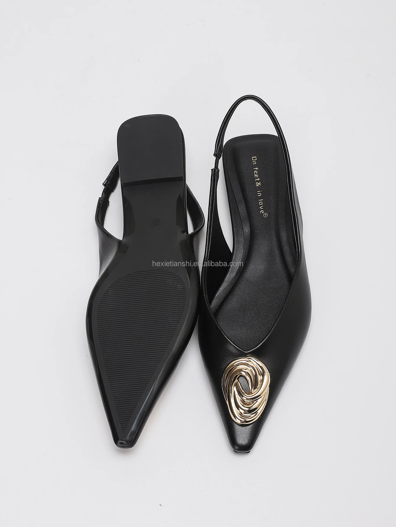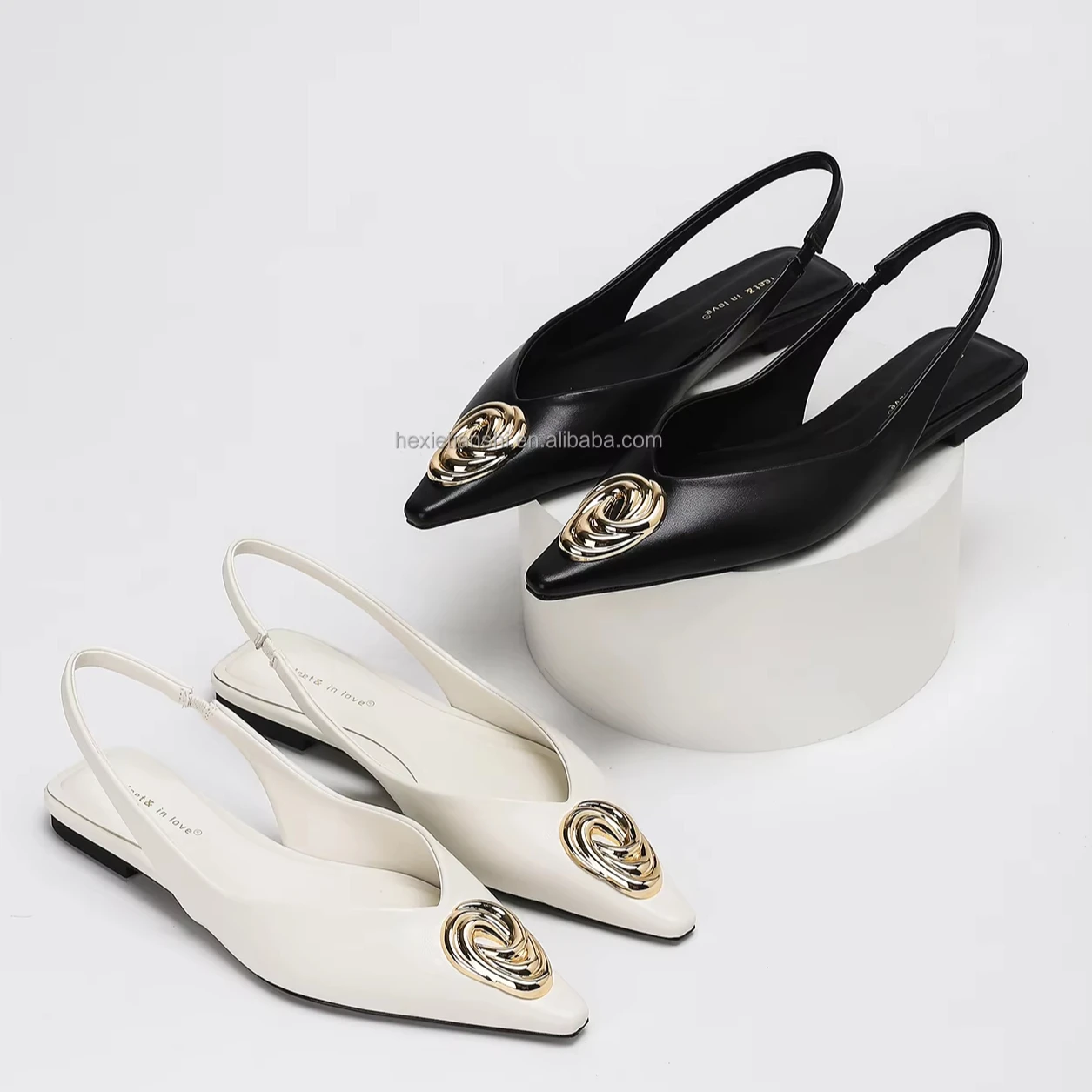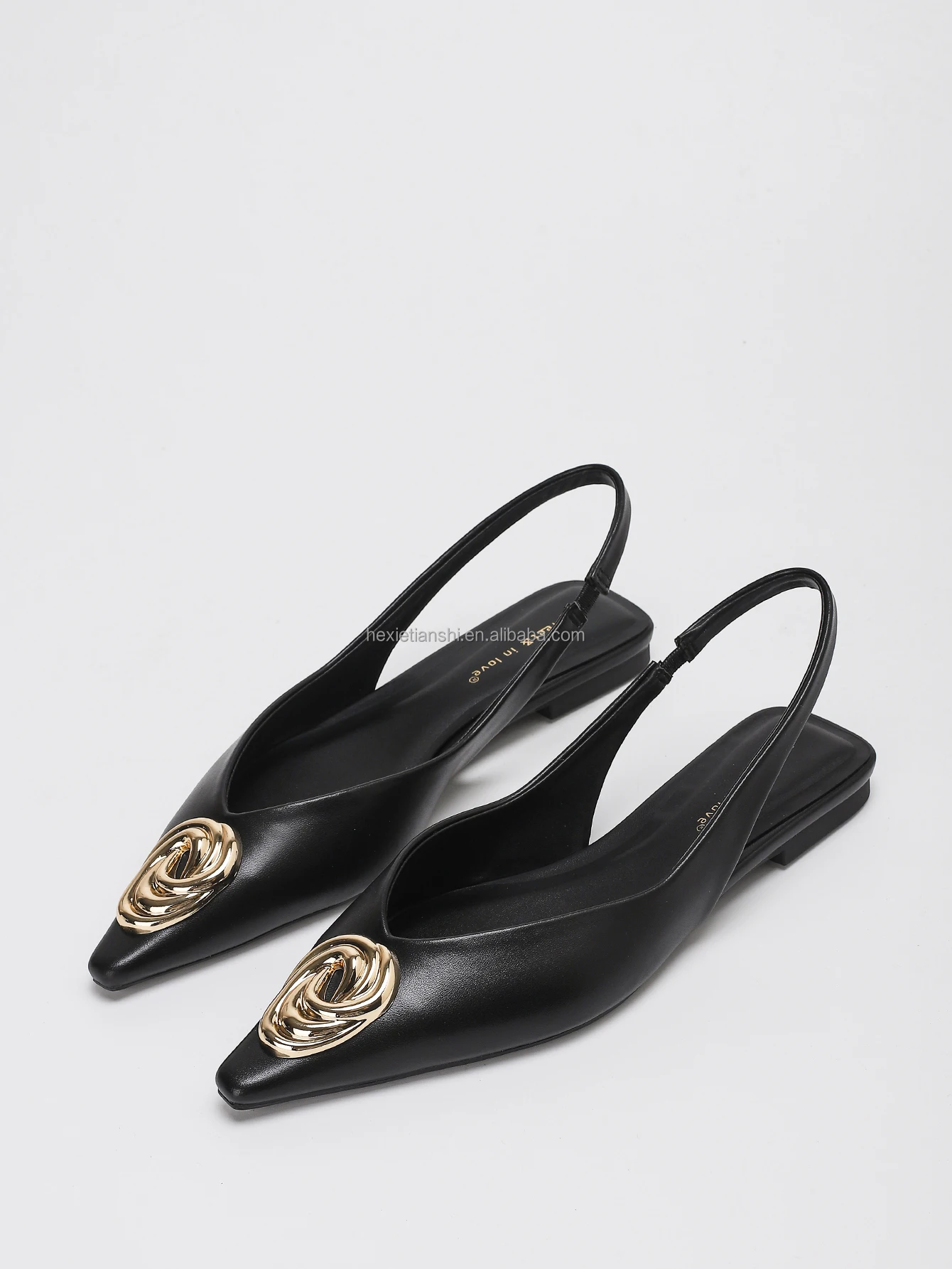 2201-1 Slip on Comfort Soft Flat Slingbacks Sandals Shoes PU Leather Pointed Toe Metal Buckle Decor Flat Loafers Shoes for Lady